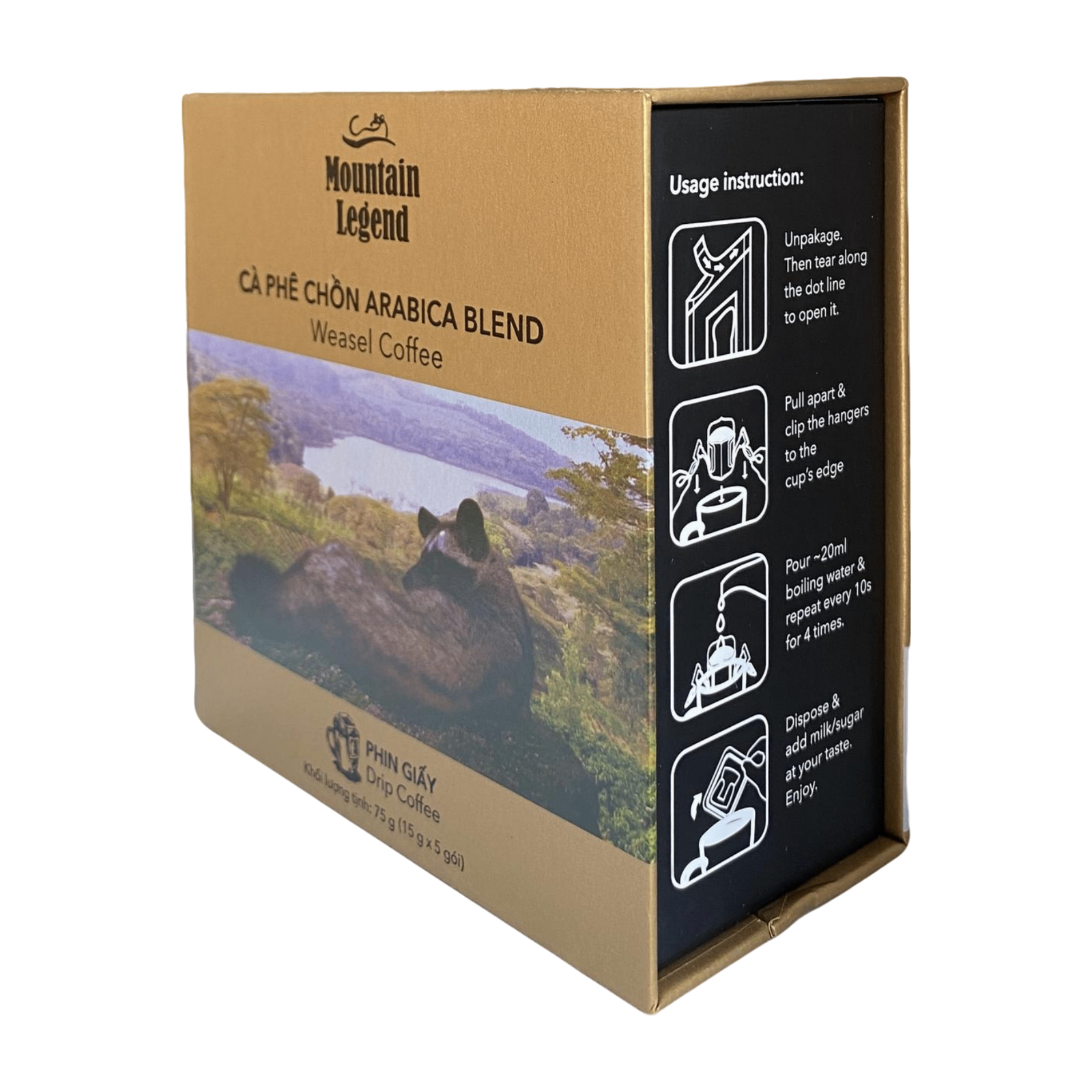Cà Phê Chồn Arabica Mountain Legend (Arabica Weasel Coffee) 75g (Phin Giấy) – Vị Ngọt Béo Tự Nhiên, Hương Hoa, Hậu Ngọt Sạch