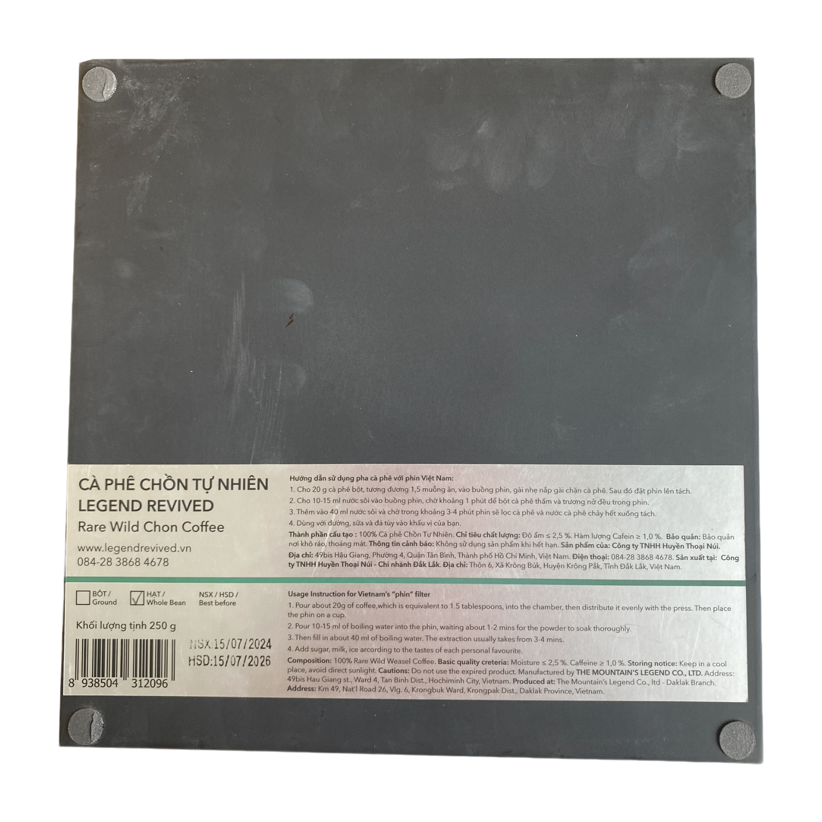 Cà Phê Chồn Rare Wild 100% Tự Nhiên Legend Revived (100% Natural Weasel Coffee) 250g (Hạt/Bột) – Vị Êm Mượt Đậm Đà Hơn Cà Phê Chồn Khác (Hộp Sơn Mài)